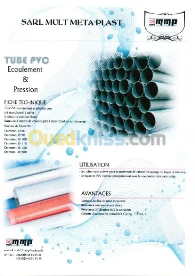LA SARL MMP ( MULTI META PLAST ) est une société de fabrication de tube en pvc tout types de diametres, ainsi que la fabrication de la gaine orange pour cablage. *Nos produits sont certi