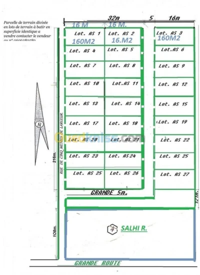 LOTS DE TERRAINS A BATIR DE 160 M2 CHACUN EN LOTISSEMENT AVEC RUE DE 5 METRES DE LARGEUR FACADE V10M. SUR 160 M. TERRAINS URBANISES MULTIFONCTIONNELS SE TROUVANT A SIDI ABAD TASSALA EL MERDJ