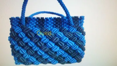 je fais des sac à main des pochette pour tout les jours ou soirée en macramé tout les modèle avec toute les couleurs. je fais aussi des rideaux en macramé . je fais aussi