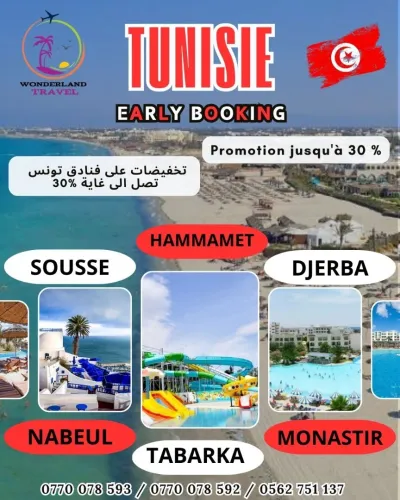 Promo exclusive chez WONDERLAND TRAVEL 😍 🇹🇳#🇹🇳#tunisie a la carte 💯💯 1️⃣DEMANDEZ VOTRE DEVIS 2️⃣RESERVEZ DÉS MAINTENANT POUR UN MEILLEUR TARIF Date D'arriver e