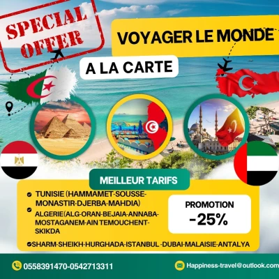 🏖تقدم لكم وكالة السياحة و الاسفار هبيناس ترافل افضل العروض و احسنها🏖 ✅️Reservez dé maintenant et profitez avec HAPPINESS TRA