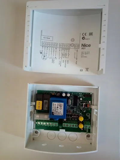 Armoire de commande,NICE modèle Mindy A01 pour les fermetures roulants.marche très très bien en très bon état.a fonctionne peut de temps 1 semaine seulement. Entrée programmable en p