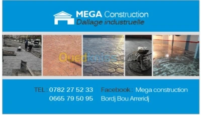Tous travaux de béton avec talochage, résine (dallage industrielle, hangars, usines, terrain exterieur, parking, pomme d'essence, espace vers .) des travaux consistent à réaliser des pla