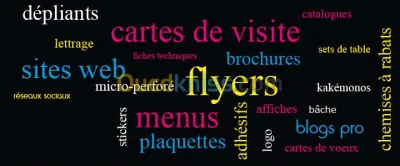 Tous travaux de conception et impression et de publicité : - Impression offset carte visite ,flyer et dépliant + etiquette Autocollant xerox A3+ 45*32