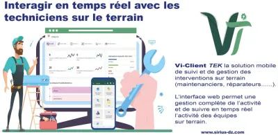 La solution Vi-client TEK « Web & mobile », conçue pour rendre la gestion à distance des interventions de maintenance sur terrain facile et simple. ses principales fonctionnalités sont