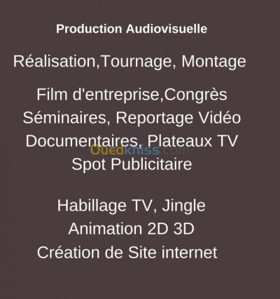 Pour tout vos besoins réalisations audiovisuels de tous genres de publie-reportages, films documentaires, couverture evénementiels ( foires, conférences, symposium, colloques, séminaires