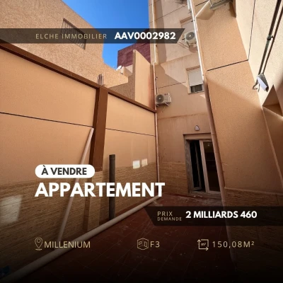 Réf: AAV0002982 📌 À VENDRE – Appartement F3 📍 Situé à Millenium – Bir El Djir, Oran ✨ D’une superficie de 150,08 m², cet appartement lumineux offre une belle configurati
