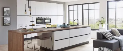 - Plans de travail pour cuisines modernes en stratifié d'origine italienne îlot central et crédence de la même couleur. Plan de travail: Dim: 4200 x 640 x40 mm Îlot central: Dim: