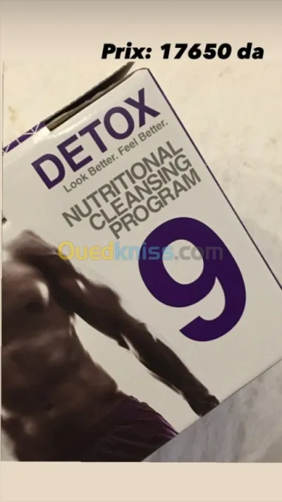 يستعمل برنامج ديتوكس مدة 9 ايام قصد تنضيف الجسم وتطهيره تظهر نتائجه خلال الايام الاولى ( الاحساس بالخفة و