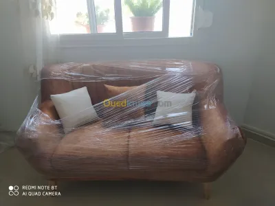 Salon type italien bon occasion trois pièces avec deux grandes oreillers et trois jetées prix fixe 28000 DA