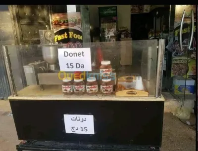 Salam 3likom je met en vente une atelier avec boutique de production de donut avec tout son matériel prêt à production et vente surplace avec une marque et toit ces papiers. Derrière bou