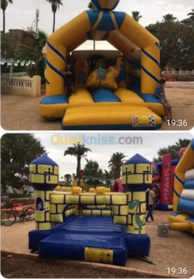 Sid Ahmed vend un lot de trés beaux tobbogans gonflables (Spiderman, Chateau d'Aladdin et chateau fort) avec moteurs et un kite de réparation. Tél Prix du lot en promotion : 57 Mill