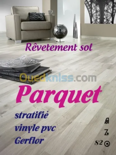 Pose et fourniture: - parquet stratifié - parquet vinyle pvc - faux mural mdf / pvc - gerflex en roule et dalle... Etc bien venu.. Meilleure service et prix.