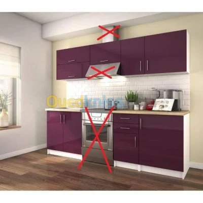 Meuble de cuisine composé de 7 éléments de couleur bordeaux avec 4 parties supérieures et 3 parties inférieures Facile à installer et ne dépend pas du marbre ou du four comme indiqué