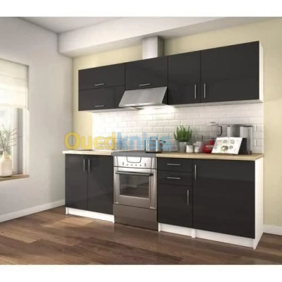 Meuble de cuisine composé de 7 éléments de couleur noir avec 4 parties supérieures et 3 parties inférieures Facile à installer et ne dépend pas du marbre ou du four comme indiqué sur