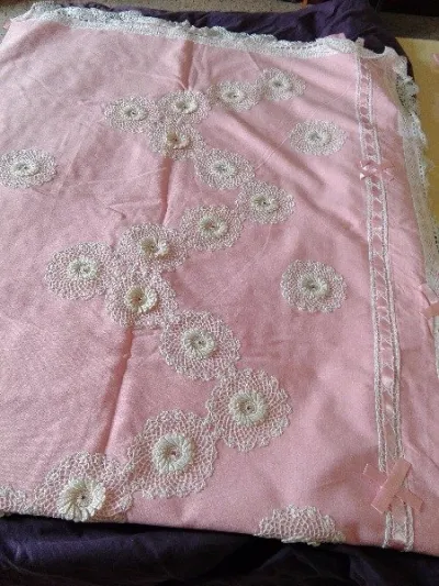 une parure de draps crochet hora fait main de 06 pièces couleur rose jamais utilisée.