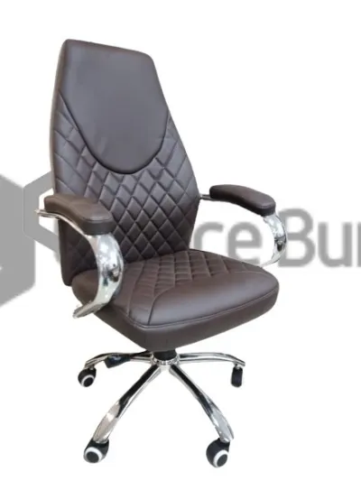 Chaise Bureau PDG Coleur Marron Accdoire Chrom et Remboree Pietment Métalique 5 Roulette