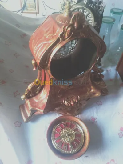 Salam je mets deux pendules assez jolies, moteur refait à pile, lune en fonte (la rouge ) l'autre en bronze sans aiguille pas en état de marche mais une pièce très ancienne 12000 dinars
