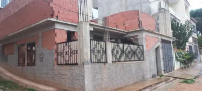 Carcasse avec 03 façades, au rez-de-chaussée il y’a un garage pour deux voitures et un F3 semi fini avec une cour de maison à la façade arrière et un petit jardin à la façade princi