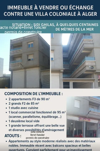 🏢 Immeuble à vendre ou échange contre une villa coloniale à Tipaza 📍 Situation : à Sidi Ghilas, à seulement quelques centaines de mètres de la mer, dans un quartier calme et ac