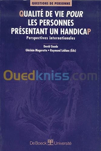 Titre : Qualité de vie pour les personnes présentant un handicap. Perspectives internationales Auteur : Raymond Leblanc , Ghislain Magerotte Editeur : De Boeck Année : 1999 Théme : Scien