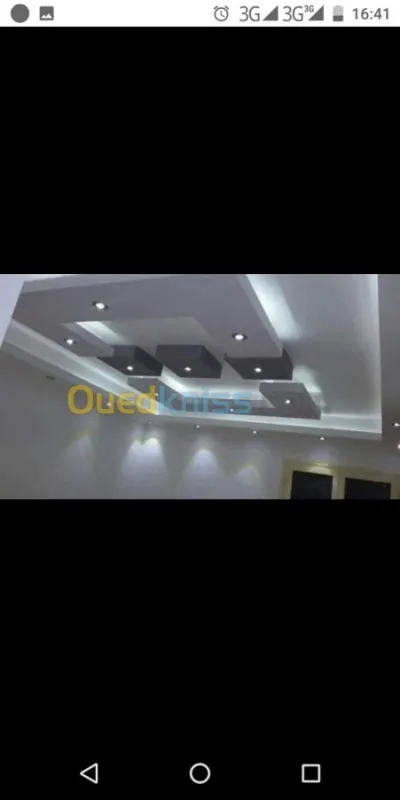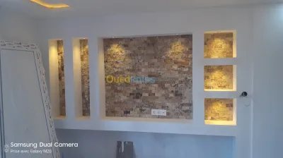 Pour tous vous travaux de revêtement d'intérieur. Plaque de plâtre BA 13 standard et hydrofuge. Revêtement mural. Cloison. Plafond. Niche. Dressing. Etc .... sur tout l'Algérie.