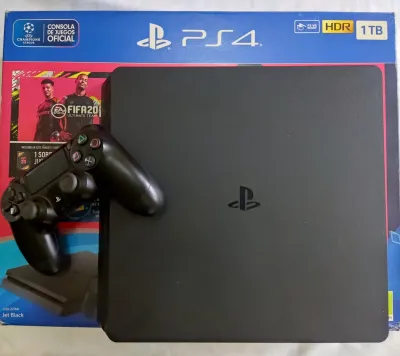 PS4 slim 1TB de stockage en très bon état avec la boite, la manette, Cable HDR et cable USB. Version 10.70