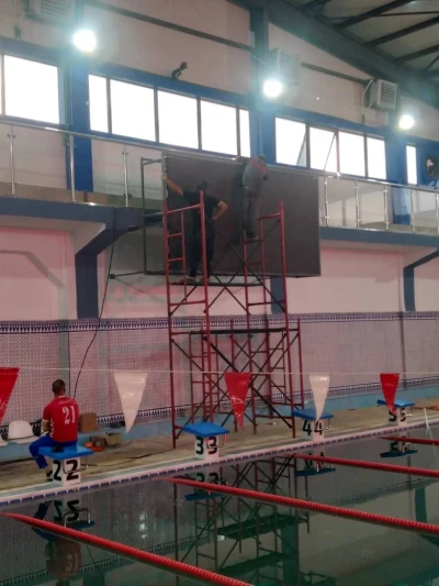 Forniture et installation d'écran LED PO4 étanche dans la pescine de complexe sportif de l' université de Relizane.