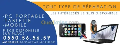 repation des tablettes et telephones portable , pc portable et pc de bureau Réparation Smartphone et Tablette changement LCD afficheur Digital et Connecteur de charge microphone ...