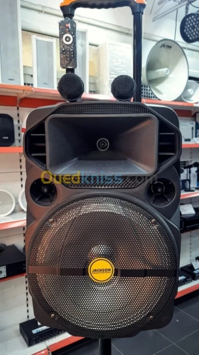 Caractère technique : - Sono Mobile JAKSON JK125 - Batterie rechargable - Carte SD - Radio FM - Bluetooth - 2 microphones sans fil - 2 Entré mic JAK - Entré mic (guitare) - L