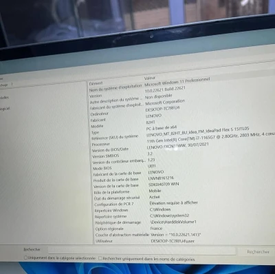 ✅intel i5 1135G7 11em / 8gb ram /512 SSD ✅intel iris xe graphics ✅Ecran 15.6" ✅windows 11 original ✅batterie 3h ✅Chargeur original 65w ✅Etat 9/10