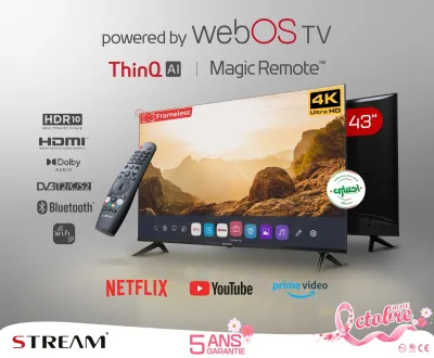 - [ ] * Stream 32 pouces SMART Web os 31500 DA - [ ] * Stream 40 pouces SMART WEB OS 46500 DA - [ ] * Stream 43 pouces SMART WEB OS 54000 DA - [ ] * Stream 43 pouces SMART WEB OS 4K 59000