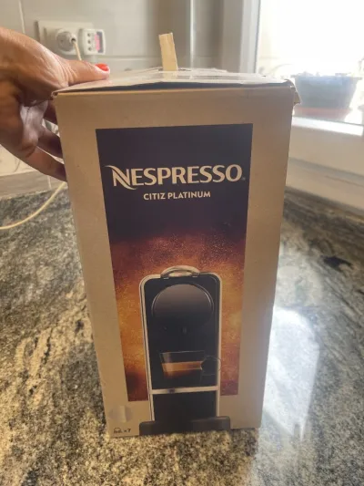 Nespresso, machine à café neuf dans son emballage avec un étui de sept capsules de café offerte Premier arrivé premier servir