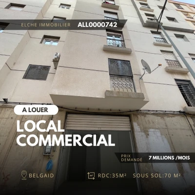 REF; ALL0000742 ELCHE IMMOBILIER vous propose a la location local située a belgaid ،bir el djir 📐 35 m² de superficie + sous sol 70 m² 🚽 sanitaire - Commodités intérieures : É