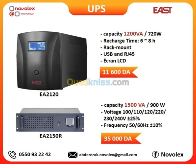 Onduleur East EA2120P 1200VA/720w 04 Sorties Poids : 8,7 kg Marque : East Modèle : EA2120P Type de produit à protéger : Equipements électroniques sensibles, systèmes de vidéosurveillan