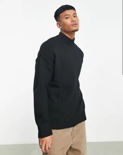 Pull-over Bershka en Noir Taille L/M Design et extras: Couleur unie Col roulé Col côtelé Bord côtelé Épaules larges Poignée structurée Doux au toucher Matériau : 82% Polyester - PES