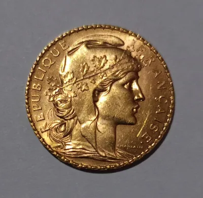 Piece en Or 20 francs 22 carats Marianne Coq 1908 Poids : 6,45 Gr