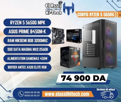 ✅INFORMATIONS GÉNÉRALES : ✅Désignation : CONFIG AMD APU - RYZEN 5 5600GT - B450 DDR4 - 16G - 256GB SSD - 400 W - SIROCCO ARGB 4 FANS - BLACK 💻 CONFIGURATION GAMING – PUISSANCE &