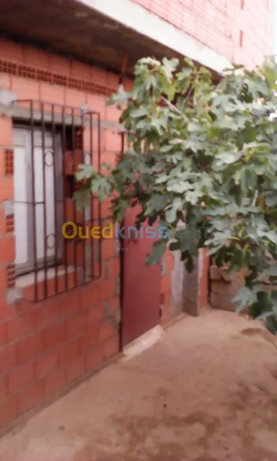 Maison a vendre a hassi ben okba (120 m2 RC+1 une façade) (RC cuisine+un petit salon,une cour de 30 M2 ,+garage et un Local + douche et toilettes) Étage (3 chambres et une grande