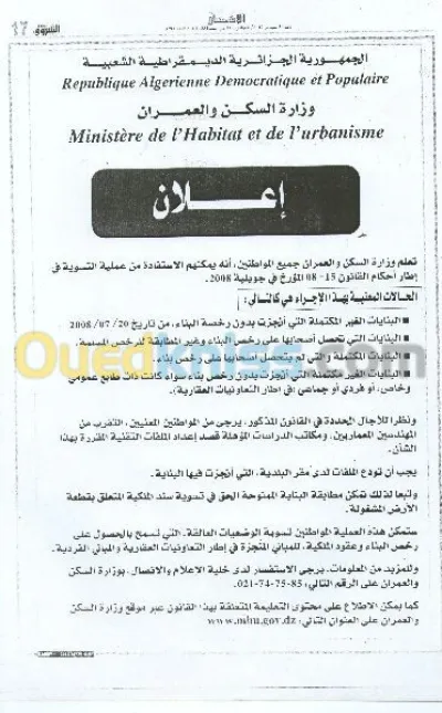 Je propose mes services en sous -traitance dans le domaine architecture -regularisation selon la loi (08/15) plan d'architecture et genie civil avec cachet et tirage (dossier complet ) -