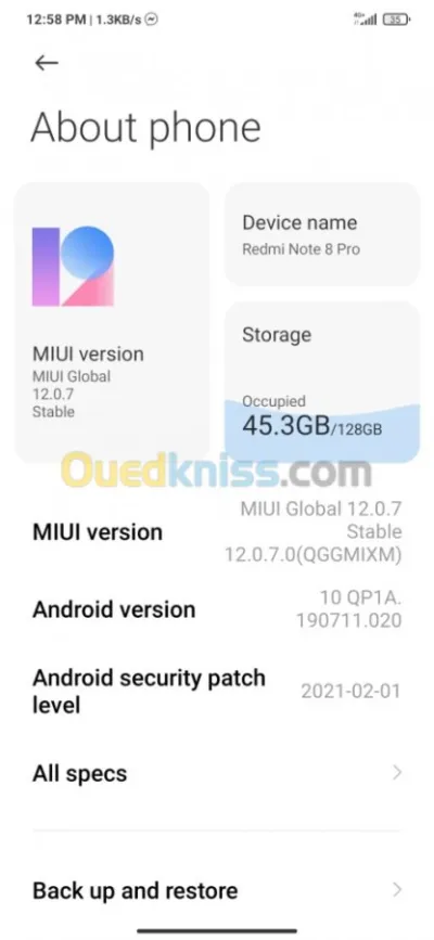 Redmi note 8 Etat 9/10 Avec boîte .