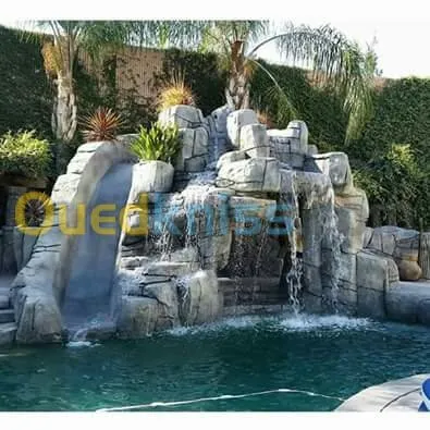 Réalisation tout type de cascade et fontaine --faux rocher -- grotte --- faux tronc de bois ---sculpture sur mur