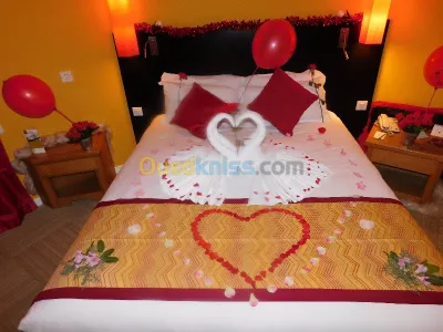 Pour la nuit de noce ou bien anniversaire de mariage a l'hôtel ou a domicile une décoration romantique moderne et magnifique a la fois a prix abordable, Promotion basse saison