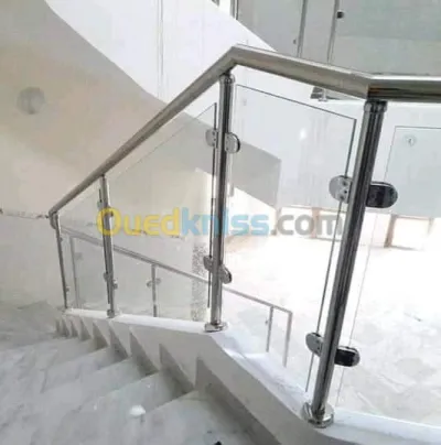 Garde corps inox soudée Garde corps inox avec verre Escalier courante mural inox Nous travaillent sur 48 wilaya شعارنا هو الجودة والاتقان