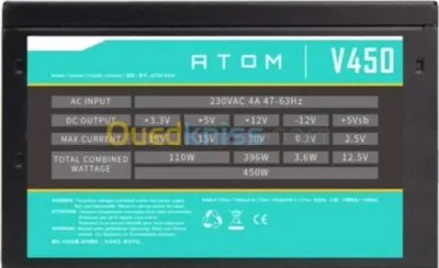 Allimentation special gaming Model ATOM V450 450Watts Non-Modular Gaming Non Modulable