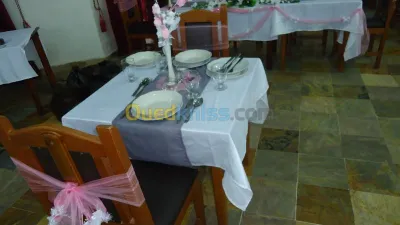 Mets en vente matériel de décoration de mariage theme blanc et rose, état comme neuf qui se compose de : 90 nappes 80 fleurs bouquet de scène 80 petit vases 70 bougeoirs