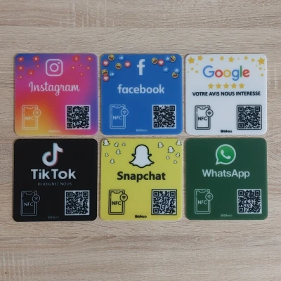 📲 Vos réseaux sociaux accessibles en un scan ! Nos plaques NFC + QR Code permettent à vos clients de vous retrouver instantanément sur Instagram, Facebook, TikTok, WhatsApp et Snapchat