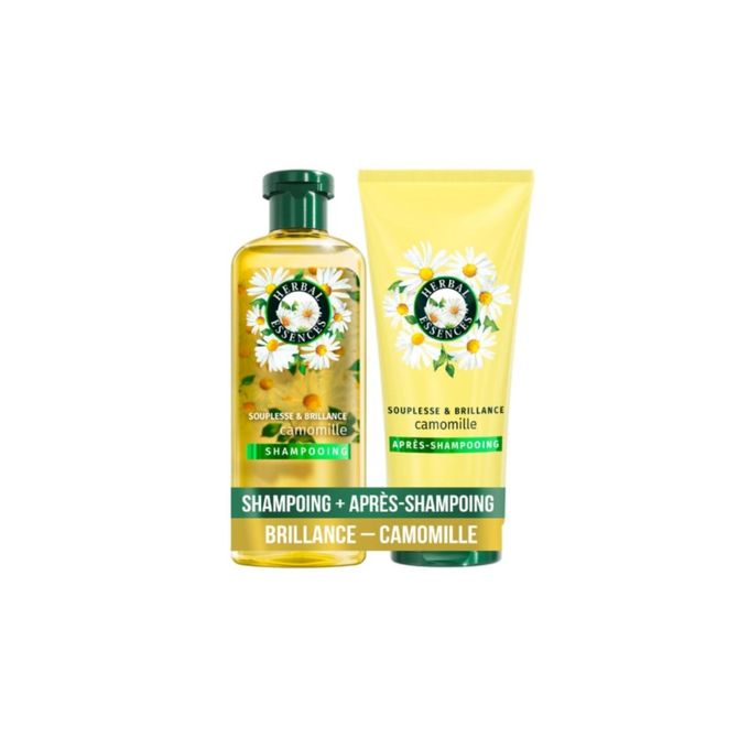 La nature et ses secrets vous offrent une chevelure éclatente grace au shampooing et après shampooing Herbal Essences Souplesse & Brillance Camomille