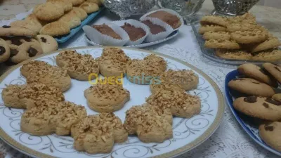 Je fais des gâteaux secs et des salés pour fêtes et occasions selon vos demandes (Tartelettes sucrées et salées, salés avec pâte feuilletée très réussie, gâteaux secs...). حلو