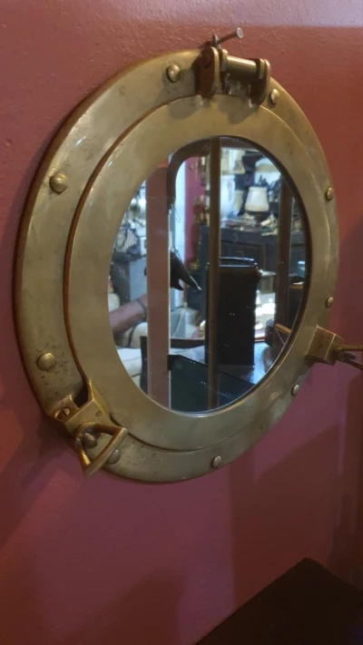 VENDU Ancien hublot ouvrant de bateau ( marin )en laiton, miroir Diamètre: